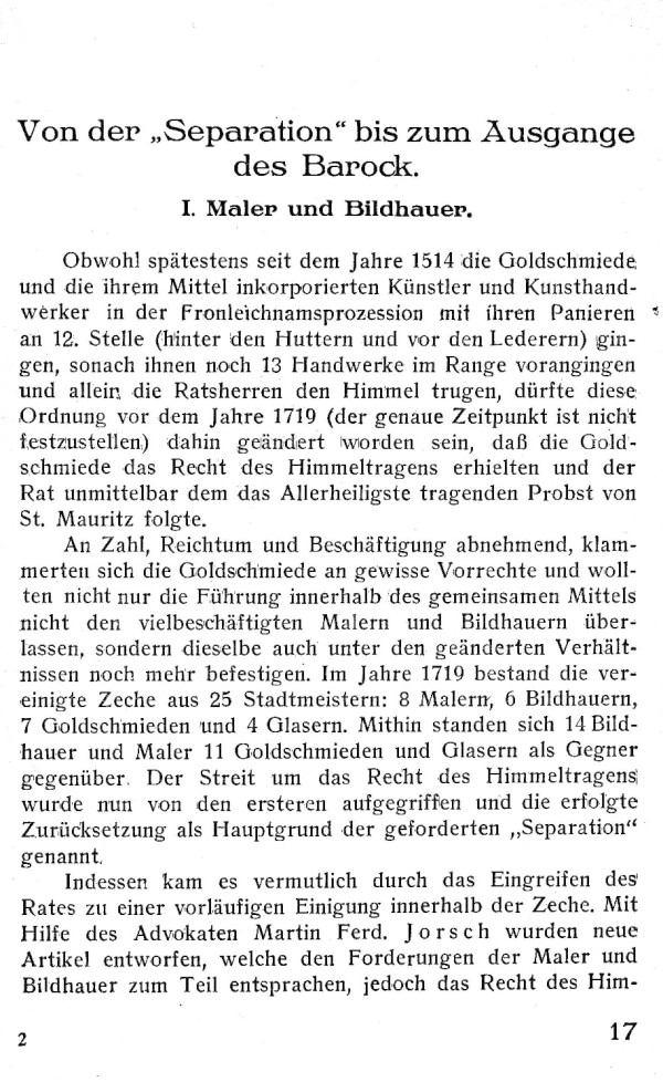 Von der "Separation" bis zum Ausgange des Barock - I. Maler und Bildhauer