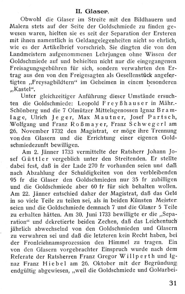 Von der "Separation" bis zum Ausgange des Barock - II. Glaser