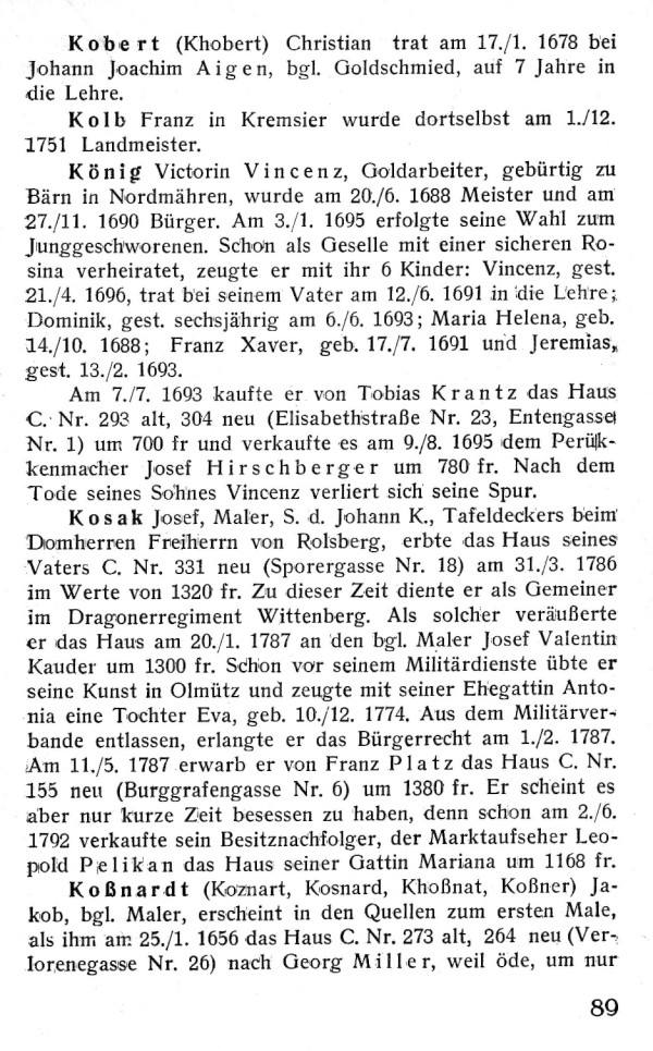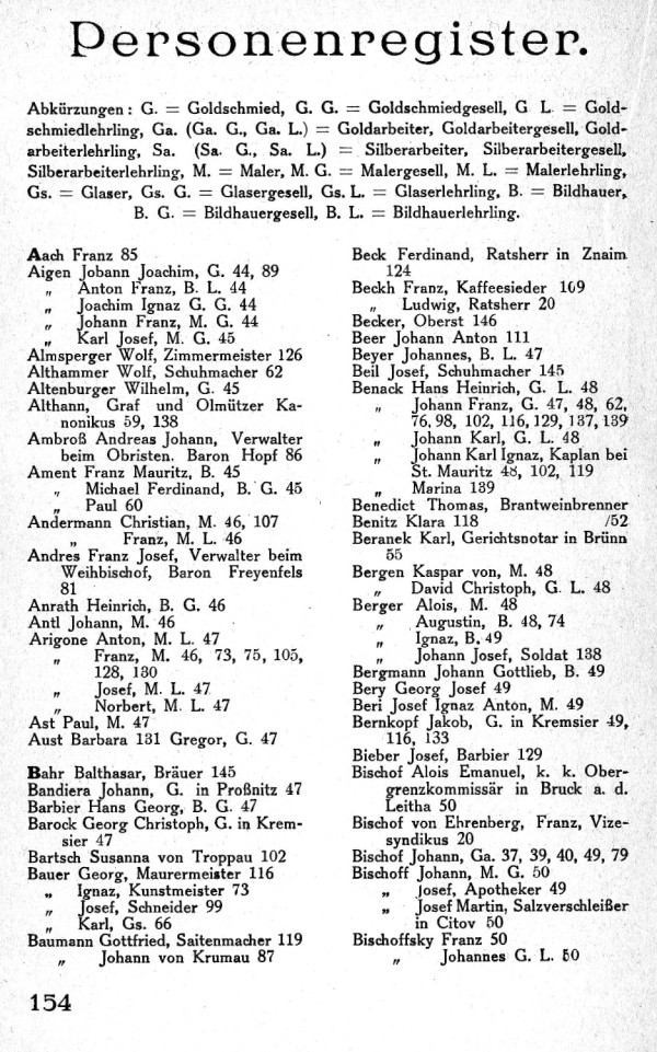 Von der "Separation" bis zum Ausgange des Barock - III. Goldschmiede, Goldarbeiter, Goldschläger und Silberarbeiter