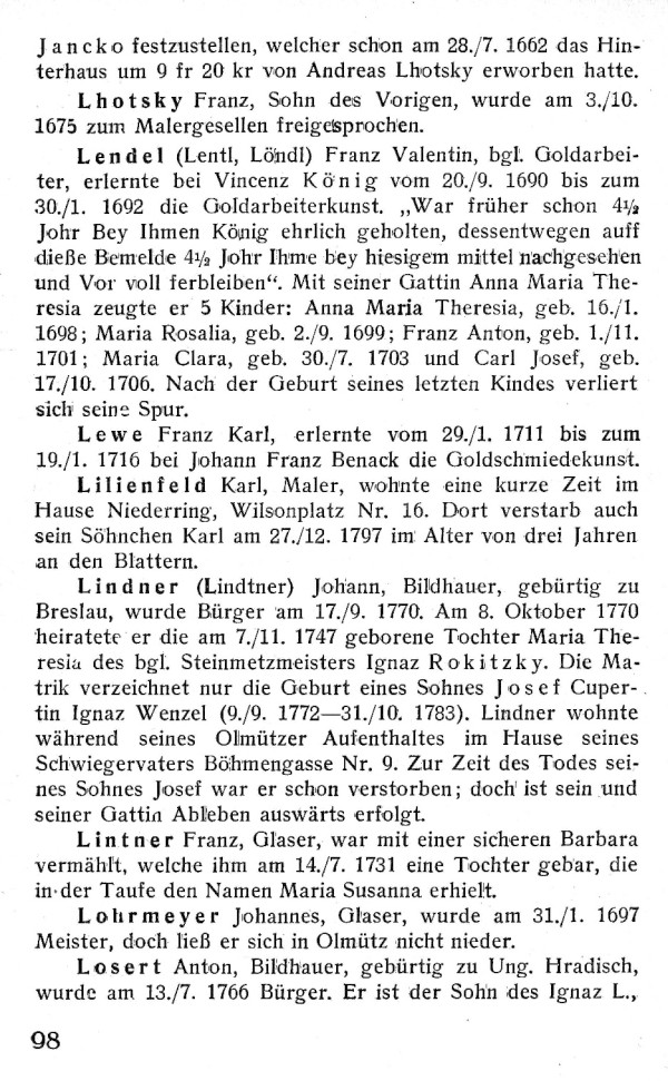 Die Olmützer Künstler und Kunsthandwerker des Barock